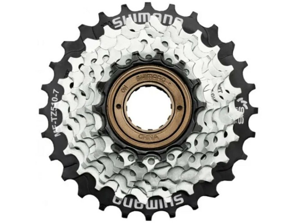 7-kolo SHIMANO MF-TZ510 14-28 zubů, hnědé/černé, v krabičce