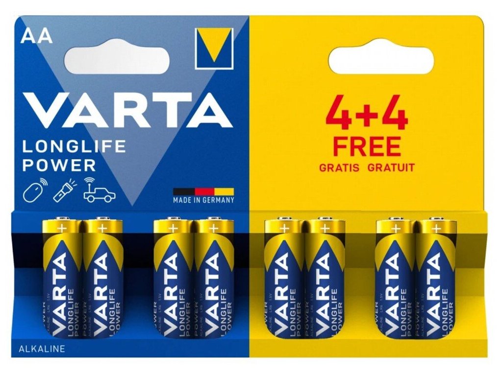Alkalické baterie AA Varta blistr 8 ks