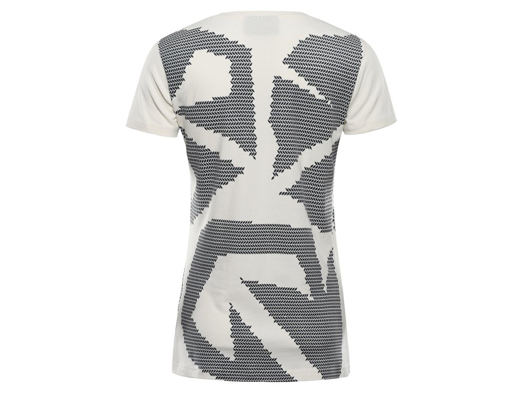 Dámské tričko s kulatým výstřihem, krátkými rukávy a kontrastním potiskem.
