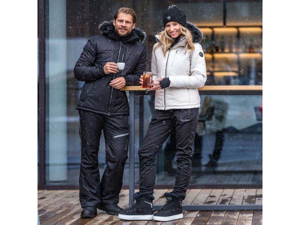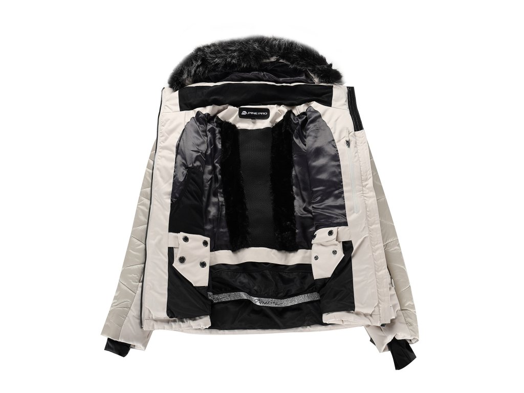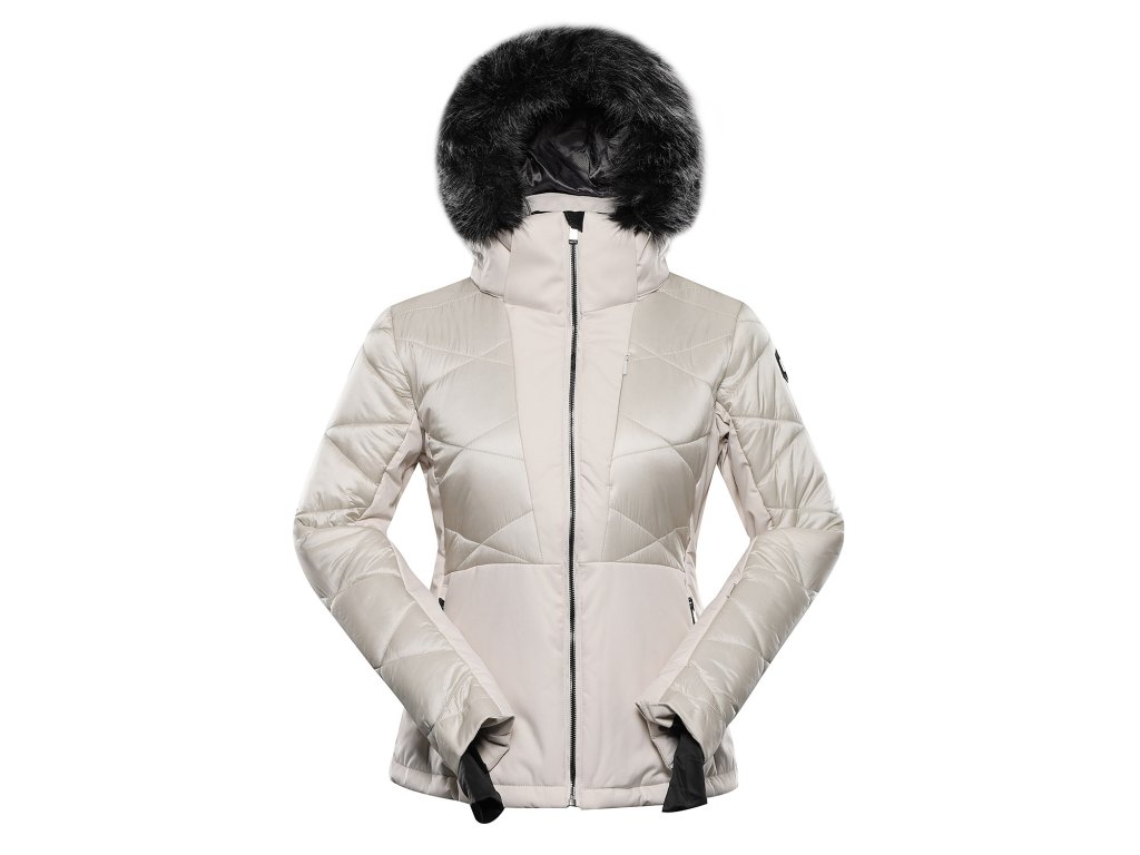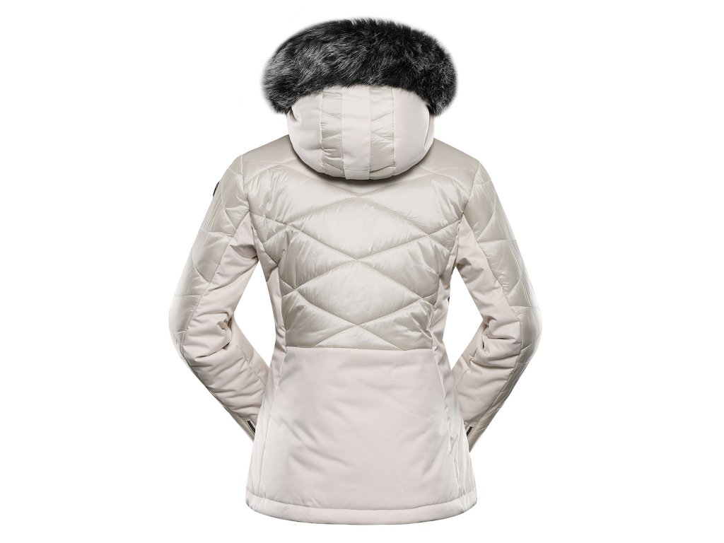 Dámská zimní lyžařská bunda s membránou NADDRA vyniká moderním a elegantním prošívaným designem, který zaujme na svahu i ve městě. Je ideální na lyže i jiné zimní aktivity v horách nebo ve městě. Vyrobena je z nepromokavého, prodyšného, větruodolného a pružného materiálu s celopotištěným povrchem a membránou PTX SNOW, která zajišťuje vodní sloupec 10 000 mm, paropropustnost 10 000 g/m2/24h a hodnotu Ret < 10. Povrchová úprava DWR zvyšuje odolnost vůči vodě a nečistotám. Střední hřejivá výplň, efektní podšívka a přiléhavý střih poskytují komfort i ženský vzhled. Švy jsou podlepené, prošívání dekorativní. Kapuce je odepínatelná se stahováním, kožešina i vnitřní hřejivý límec lze rovněž odepnout. Rukávy mají vnitřní elastickou manžetu s otvorem na palec, odvětrávání v podpaží se zipy umožňuje regulaci teploty. Odepínatelný sněhový pás s elastickou vsadkou zajišťuje volnost pohybu, spodní lem lze stáhnout gumičkou. Bunda má šest praktických kapes, klíčenku v kapse a stylovou nášivku na rukávu. Dámská lyžařská bunda NADDRA je skvělou volbou pro ženy, které hledají kombinaci funkčnosti, tepla a elegance.