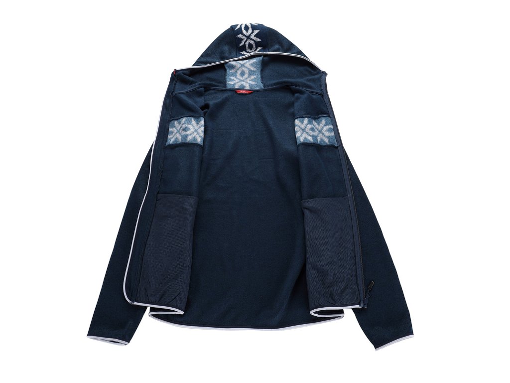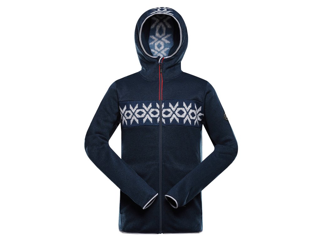 Pánský hřejivý svetr NORES je vyroben z kvalitního materiálu, který je hřejivý, strukturovaný, vyplétaný a melírovaný s potištěným vzorem, který zaujme na první pohled. Polopřiléhavý střih zajišťuje pohodlné nošení, zatímco kapuce lemovaná gumou a krytka u brady poskytují ochranu proti větru a chladu. Rukávy a spodní část svetru jsou zakončeny gumovým lemem pro lepší přizpůsobení a komfort. Svetr má dvě praktické kapsy a nášivku na rukávu, delší taháčky u zipů usnadňují manipulaci. Stylový design kombinuje atraktivní vzor s funkčností, takže svetr NORES zahřeje a zároveň zaujme při každodenním nošení i venkovních aktivitách.