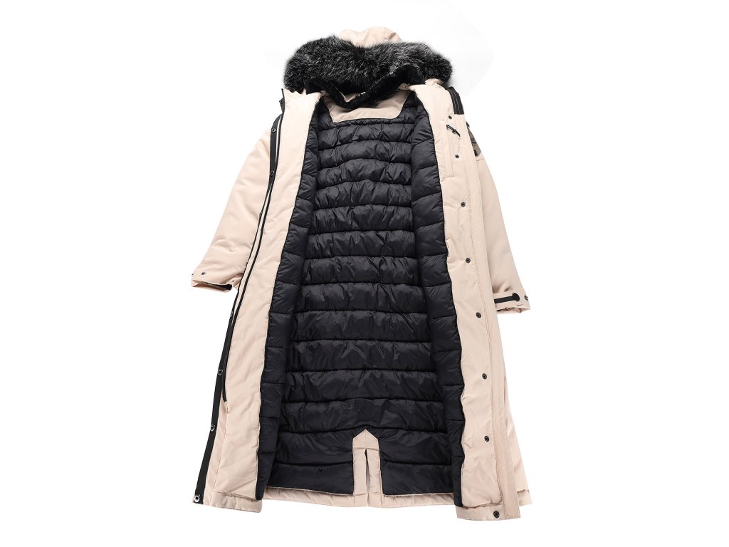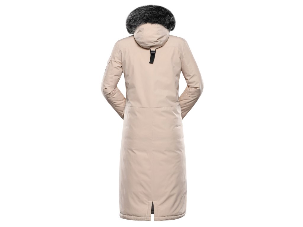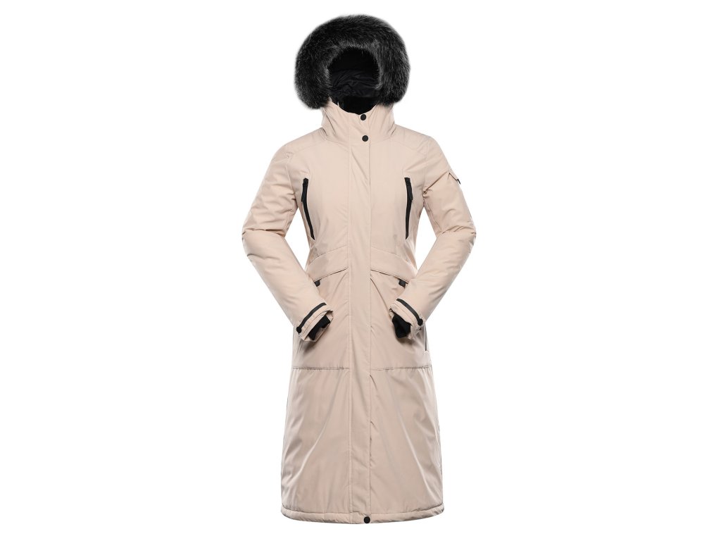 Dámský zimní kabát s membránou PTX WUSSA je ideální volbou pro chladné zimní dny, kdy potřebujete spojit spolehlivou ochranu proti nepřízni počasí s elegantním vzhledem a maximálním pohodlím. Díky dlouhému střihu poskytuje zvýšenou ochranu před chladem a větrem, zatímco kvalitní materiál s membránou PTX a úpravou DWR zajišťuje vodní sloupec 5 000 mm a prodyšnost 5 000 g/m2/24 h, kabát tak odolá dešti i sněhu a zároveň umožní odvádění vlhkosti od těla. Nepromokavá, prodyšná, větruodolná a pružná tkanina doplněná silnou hřejivou výplní a prošívanou podšívkou se postará o příjemný tepelný komfort i při nízkých teplotách. Polopřiléhavý střih podtrhuje ženskou siluetu a zároveň neomezuje v pohybu. Neodepínatelná kapuce s odepínatelnou kožešinou dodává kabátu stylový vzhled a spolu s vnitřním límcem z hřejivého materiálu chrání před chladem. Zapínání na dvoucestný zip je praktické při každodenním nošení, rukávy s vnitřní manžetou z úpletu brání pronikání studeného vzduchu a osm prostorných kapes poskytuje dostatek místa pro všechny nezbytnosti. Moderní vzhled kabátu doplňuje nášivka na rukávu a kvalitní zpracování, díky němuž je model WUSSA nejen funkční, ale také nadčasový kousek do zimního šatníku.
