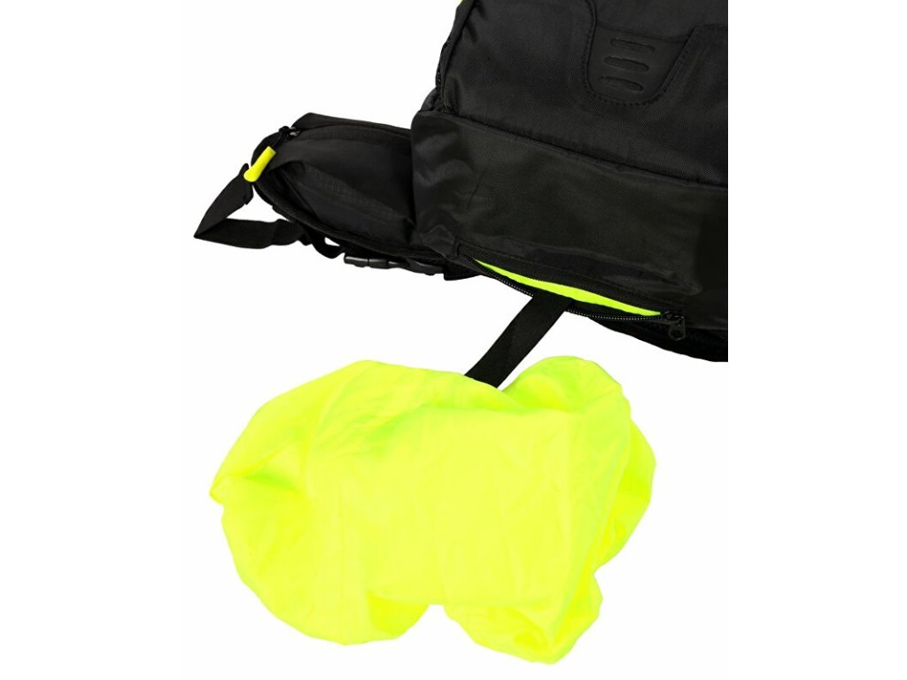 Součástí batohu je dobře viditelná pláštěnka s fixací v horní části batohu, díky které pláštěnka nesjíždí.