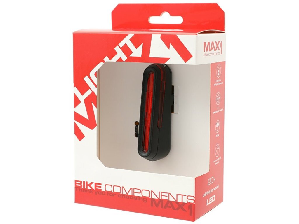 Lehká zadní USB blikačka MAX1 Ilumi 2.0 s COB diodami a funkcí AUTOSTOP.Zapomínáš po zastavení vypnout světlo? Proto jsme tento model světla vybavili funkcí AUTOSTOP, která po 4 minutách bez pohybu sama světlo vypne a při následném rozjetí světlo opět sama rozsvítí.