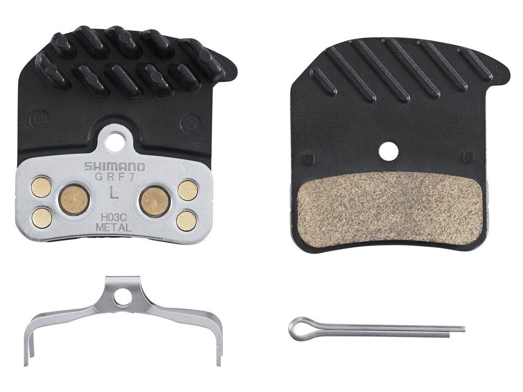 Brzdové destičky SHIMANO H03C-MFA metal, s chladiči čtyřpístkové, v krabičce