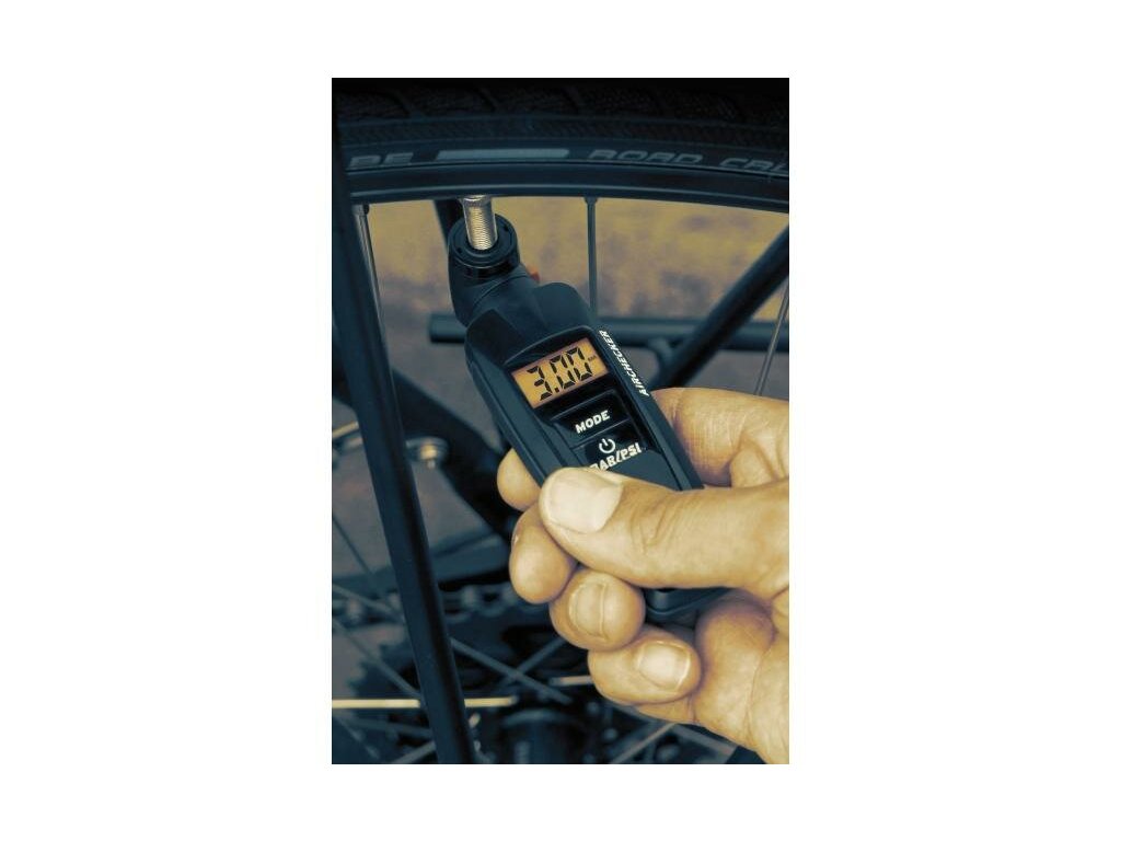 Digitální tlakoměr SKS pro měření tlaku, vhodný pro všechny typy ventilků. Zajímavá vychytávka je podsvícení displeje.Otočná duální hlava na auto i galuskový ventilek