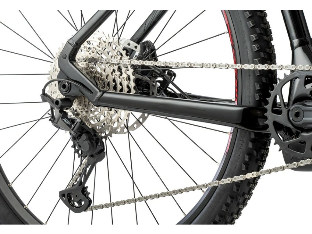 - Jednodílné provedení spodní trubky s integrovanou 750 Wh baterií a šasi motoru