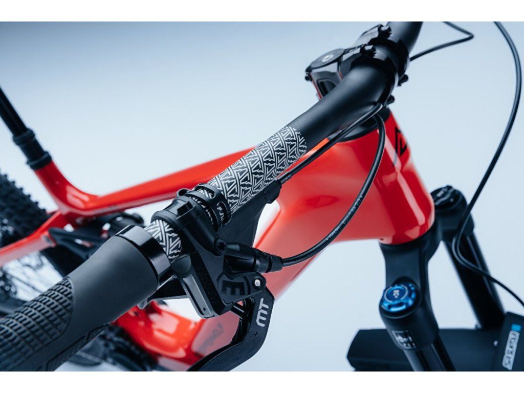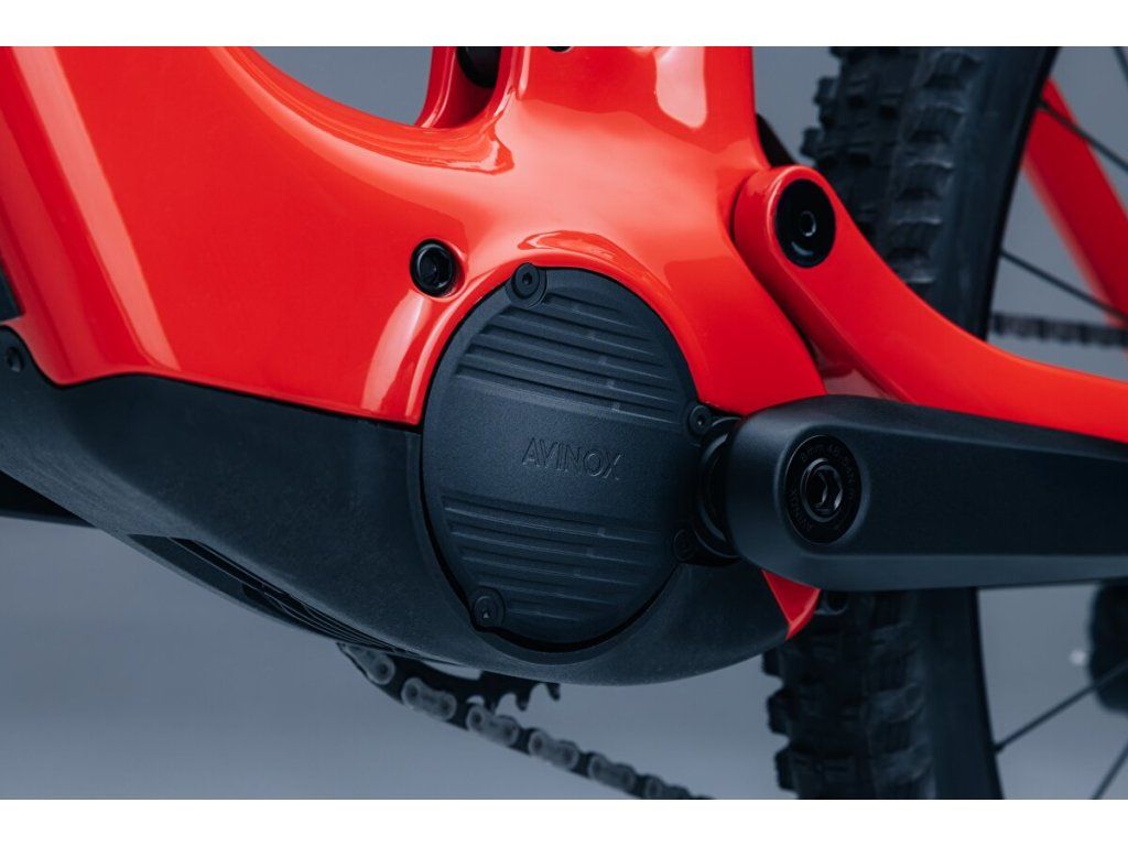 allmountinové elektrokolo s pohonem DJI Avinox, celoodpruženým karbonovým rámem se zdvihy 160 mm, podvozkem SR SUNTOUR a mechanickou řadící sadou SRAM