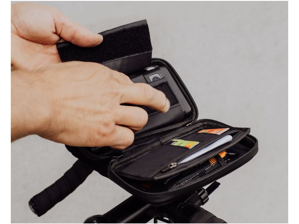 Brašna na řidítka ve voděodolném provedení ochrání nejen váš telefon, který v ní můžete zároveň také ovládat. Je vyrobena z odolného vyztuženého materiálu a dobře drží svůj tvar. Spolehlivě je uchycena pomocí nastavitelné objímky s dvojitou pojistkou proti vypadnutí a je dobře přístupná zipem po obvodu.