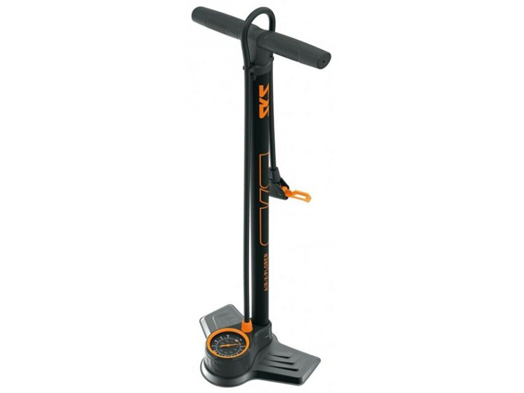 Kvalitní servisní nožní pumpa SKS tlakoměrem. Díky duální hlavě je možné hustit všechny druhy ventilků.Max. Tlak: 10 bar