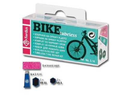 1× lepidlo 5 ml, 1× zdrsňovač, 4× malý flek, 2× větší flek, vhodné pro butylové i kaučukové duše, servisní balení po 10ti ks, cena za ks