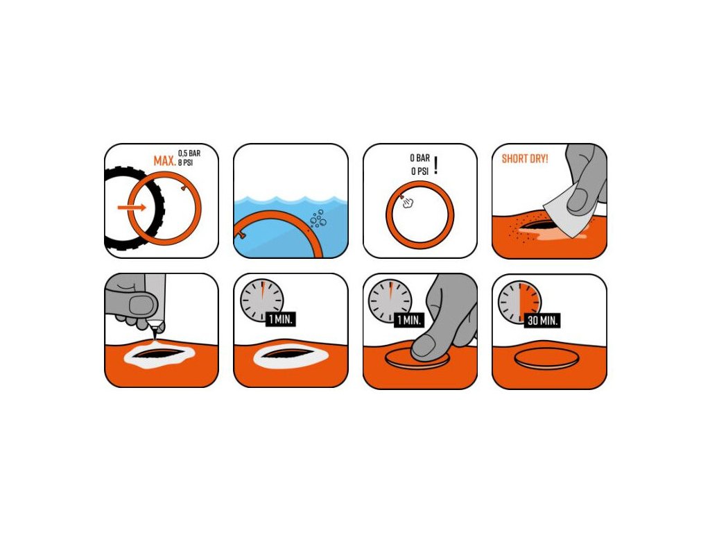 Sada TUBOLITO Tubo Patch Kit pro opravdu TPU duší. Zvýšená tepelná odolnost zajišťuje spolehlivé utěsnění i při vyšších teplotách.Sada obsahuje: