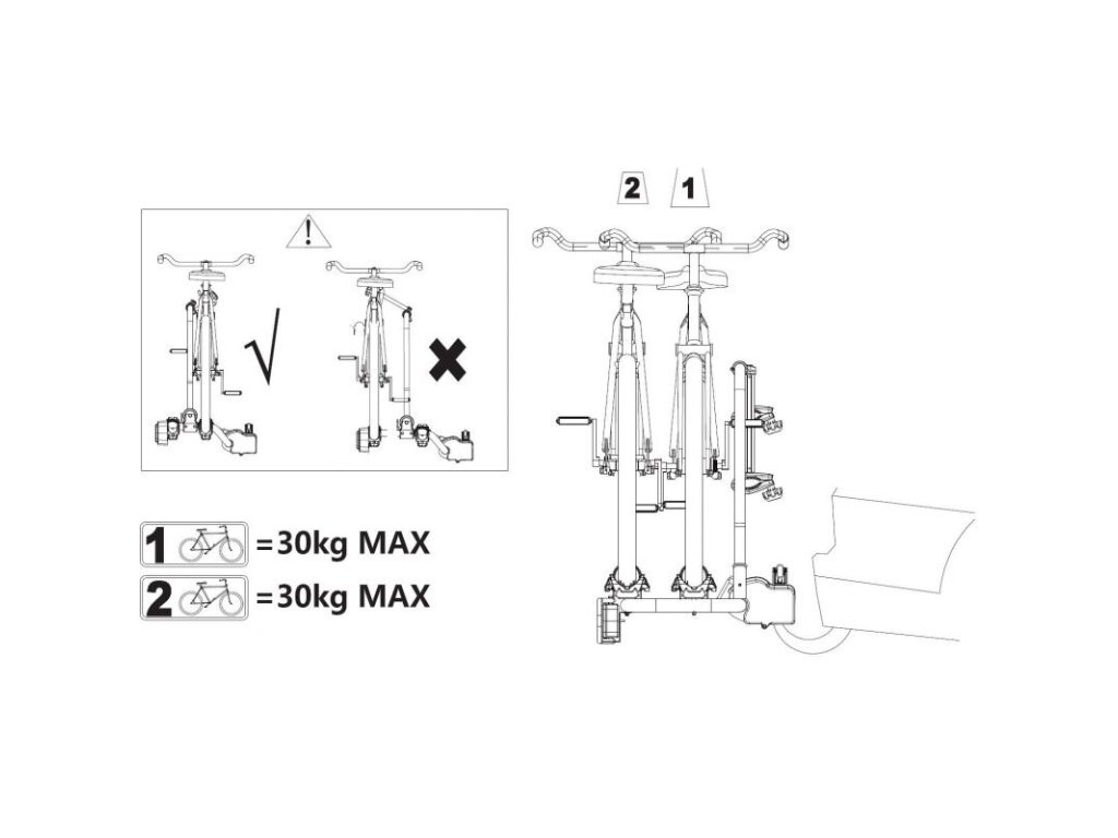 Moderní a velmi snadno ovladatelný nosič nosič kol na tažné zařízení Aroso Elde od německé renomované značky Aroso s tradicí na trhu již od roku 1973. Nosič je vhodný na naprostou většinu typů jízdních kol, trekových, horských i silničních a také na elektrokola. Každá ližina má maximální zatížitelnost 30kg. Nosič je plně uzamykatelný, obě jízdní kola jsou zabezpečená individuálními zámky. Rychlá a snadná montáž a demontáž s velmi kompaktním a funkčním rychloupínacím systémem včetně integrovaného zámku k tažnému zařízení v praktické páce. Montáž nevyžaduje použití velké síly. Pláště kol jsou upevněny pomocí ozubených pásků. Sklopná funkce nosiče poskytuje pohodlný a rychlý přístup k zavazadlům vozu také s namontovanými koly. Nosič je standardně dodáván se zástrčkou 13-pinů, po použití příslušného adaptéru lze připojit k zásuvce 7-pinů (adaptér není součástí dodávky). Homologace TÜV a český Atest 8SD zajistí bezproblémové používání nosiče. Držáky rámu jsou vybaveny pryžovou ochranou, která zabraňuje poškrábání rámů jízdních kol. Průměr rámu jízdního kola - minimálně 30mm, maximálně 50mm. Montáž bez nutnosti použití nářadí. Rozměry - šířka 120cm / výška 20cm ve sklopeném stavu / délka 56cm. Maximální zatížení nosiče 60kg. Hmotnost nosiče 16kg. Materiál nosiče - odolná trubková konstrukce z pozinkované oceli kombinovaná s ližinami z aluminia s posuvnými úchyty plášťů kol.Distributor: Cyklomax, spol. s r.o., Pardubická 504, 533 52 Srch. E-mail: info@cyklomax.cz