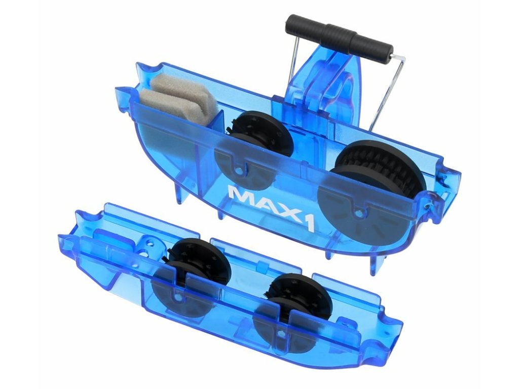 Praktická pračka MAX1 s držadlem na řetěz s bočními a vertikálními kartáči.Díky systému kartáčů pračka řetěz důkladně vyčistí a zajistí mu mnohonásobně delší životnost. Po vyčištění lze řetěz v pračce dokonale promazat, aniž byste znečistili kolo, brzdový systém, nebo podlahu.