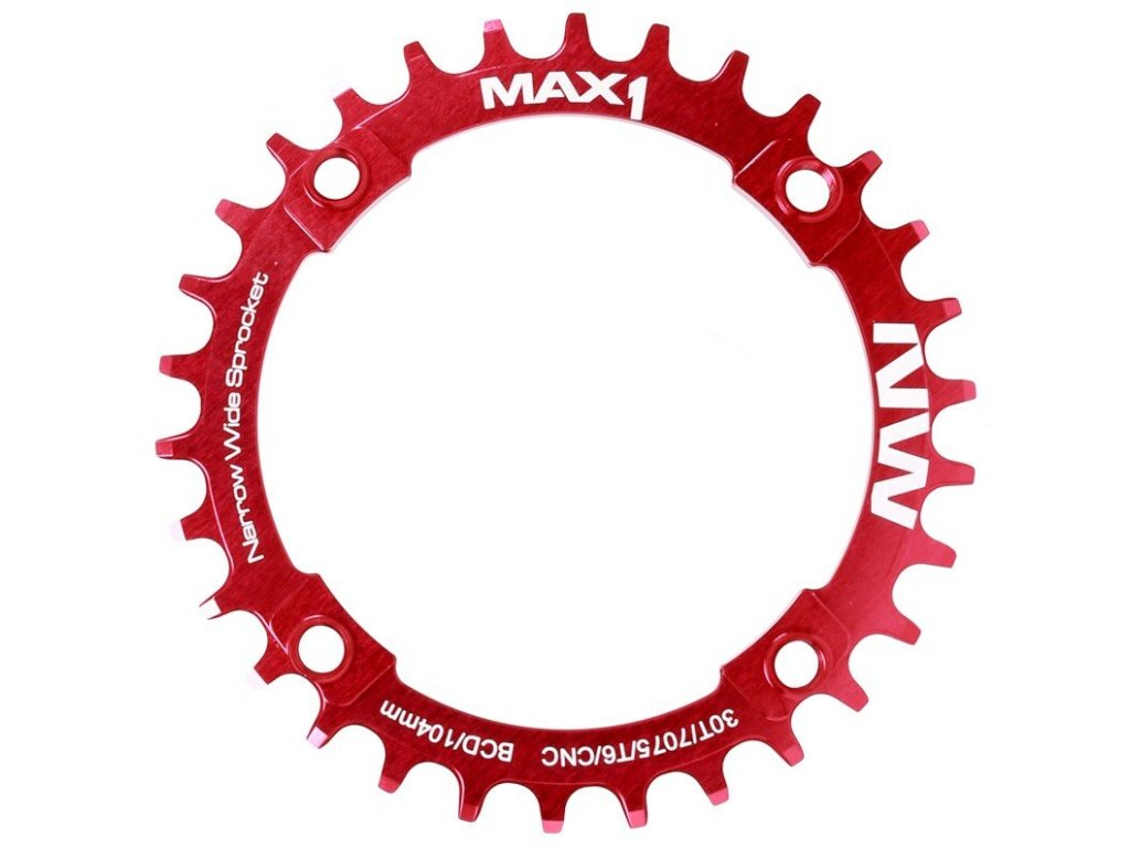 Převodník MAX1 Narrow Wide pro montáž na kliky s roztečí 104mm.Tvar zubů zajišťuje hladký chod a stabilitu řetězu s převody 1x10 nebo 1x11, převodník je tedy možné použít jak na 10-ti, ale i 11-ti rychlostní řazení.
