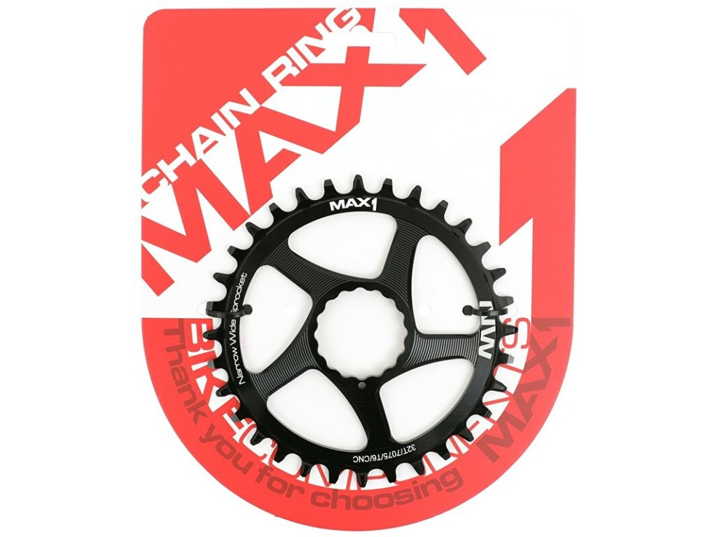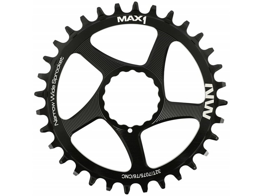 Převodník MAX1 Narrow Wide pro přímou montáž na kliky RACE FACE.Tvar zubů zajišťuje hladký chod a stabilitu řetězu s převody 1x10, 1x11 nebo 1x12, převodník je tedy možné použít jak na 10-t, 11-tii, ale i 12-ti rychlostní řazení.