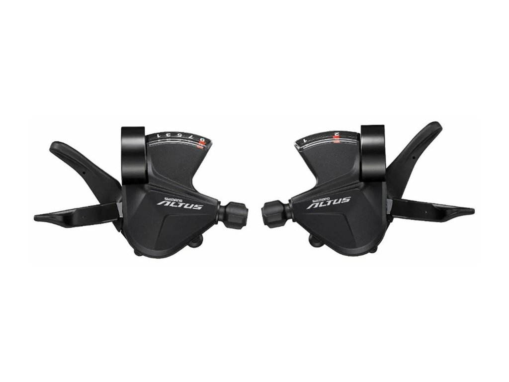 • řadící jednotky SHIMANO Altus SL-M2010 Rapidfire Plus pro 2x9 rychlostí / dvojpřevodník, s indikátory řazení• pravý mechanismus je určen pro 9 převodů, měnič převodů, levý pro 2 převodník, přesmykač