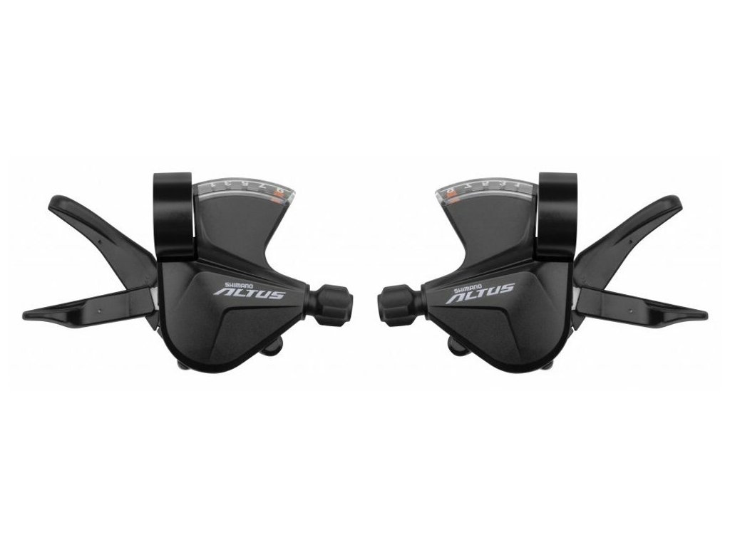 • řadící jednotky SHIMANO Altus SL-M2010 Rapidfire Plus pro 3x9 rychlostí / trojpřevodník, s indikátory řazení• pravý mechanismus je určen pro 9 převodů, měnič převodů, levý pro 3 převody, přesmykač