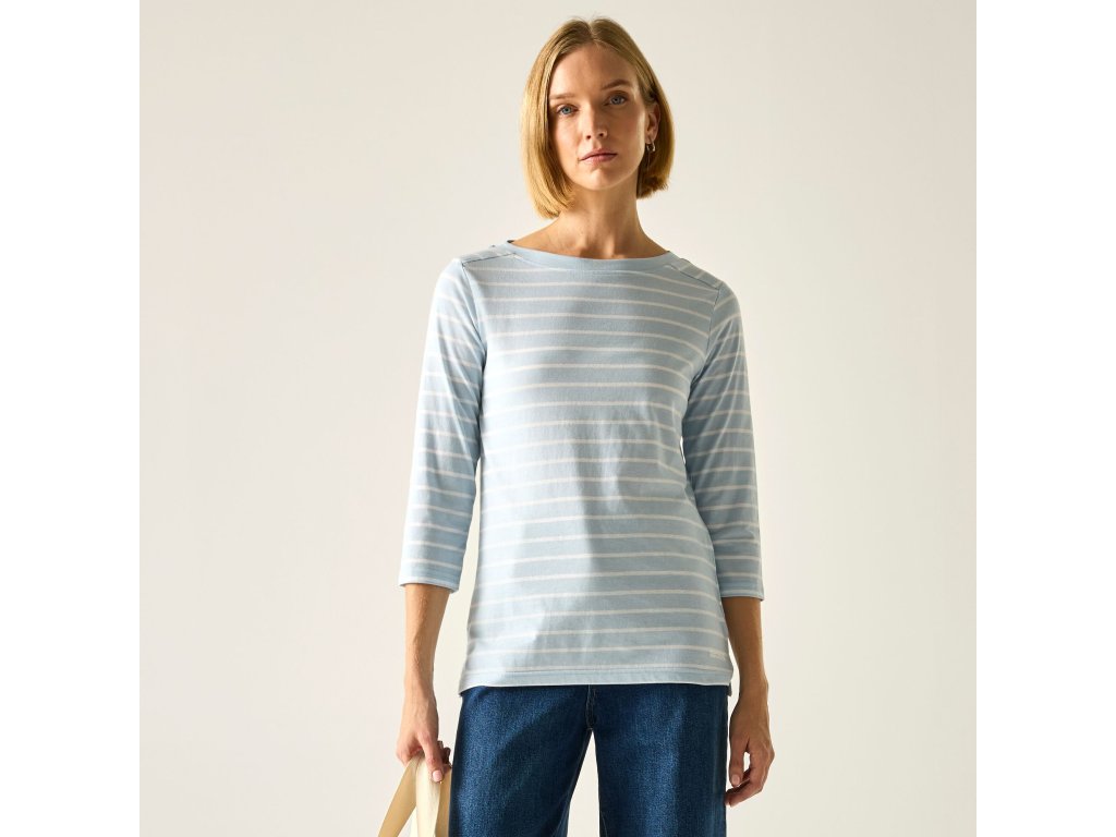 Stylové a pohodlné, naše dámské tričko Bayletta II je ideální pro váš každodenní šatník. Tento dámský top s dlouhým rukávem, vyrobený z jednobarevné polybavlněné tkaniny, poskytuje měkký pocit na kůži a odolnost pro každodenní nošení. Všestranný svetr se širokým lodičkovým výstřihem a 3/4 rukávy nabízí uvolněný, ale sofistikovaný vzhled, který je ideální pro každou příležitost. Boční rozparky dodávají lemu moderní nádech a zvýrazňují jeho stylovou siluetu. Navíc tkanina UV Protection s hodnocením UPF 30+ zajišťuje, že zůstanete chráněni před sluncem. • 155 g/m2 60% BCI bavlna/40% polyester single jersey Široký lodní krk 3/4 rukáv Boční rozparky k lemu UV ochrana (UPF) Tkanina 60% bavlna; 40% Polyester Vyrobeno v Bangladéš