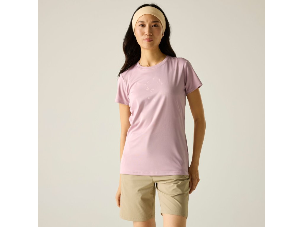 Dámské tričko s kulatým výstřihem, krátkými rukávy a kontrastním potiskem. Tričko je vyrobené z luxusního funkčního materiálu s úpravou Aquamove, který výborně odvádí vodu a pot od pokožky a udržuje tak tělo v naprostém suchu. Materiál je jemný, pobroušený, vysoce elastický a prodyšný.