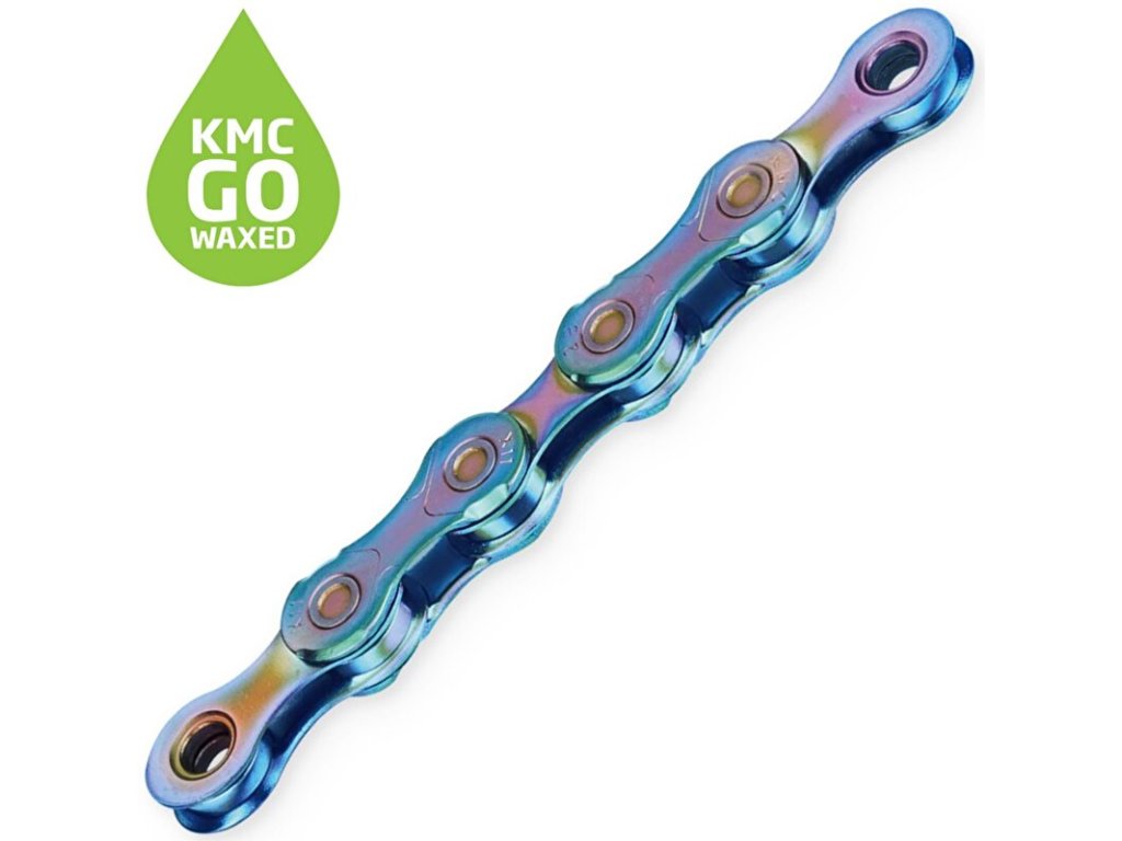 Řetěz KMC X-12 aurora modrý v krabičce 126 čl. WAX-voskovaný