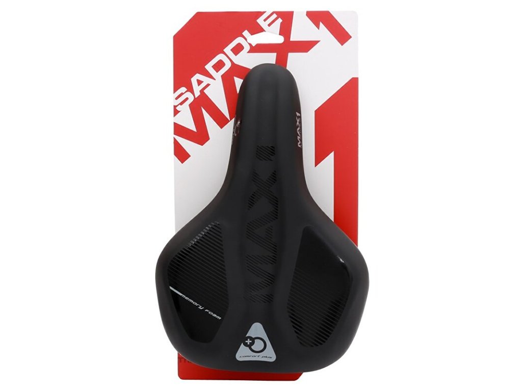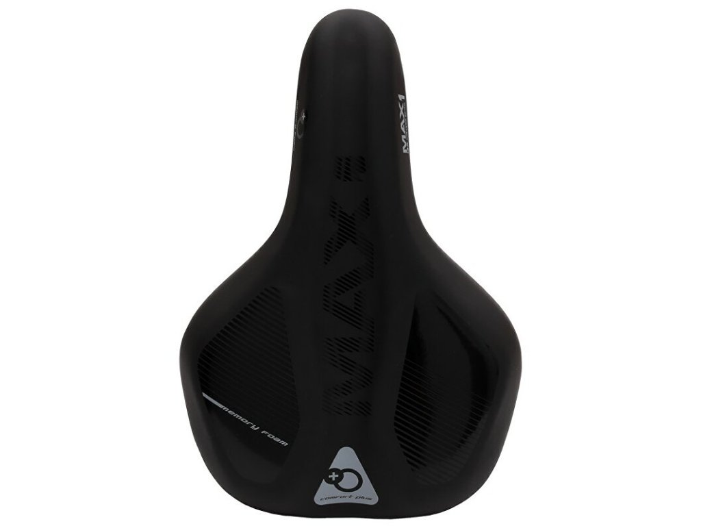 pohodlné turistické sedlo MAX1 Ergo Plus s vloženou paměťovou pěnou, rozměry: 280x173 mm, černá matt/lesk design