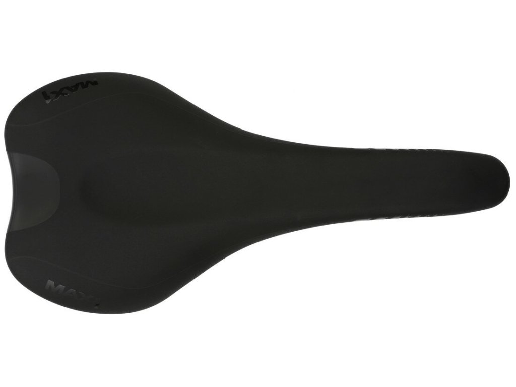 Závodní sedlo MAX1 Evo s karbnovými ližinami a karbonovou platformou.Ergonomický středový prolis zvyšuje komfort a redukuje tlak v pánevní oblasti. Výplň sedla velmi dobře tlumí otřesy a zajišťuje pohodlí. Jednoduchá údržba a voděodolný povrch.
