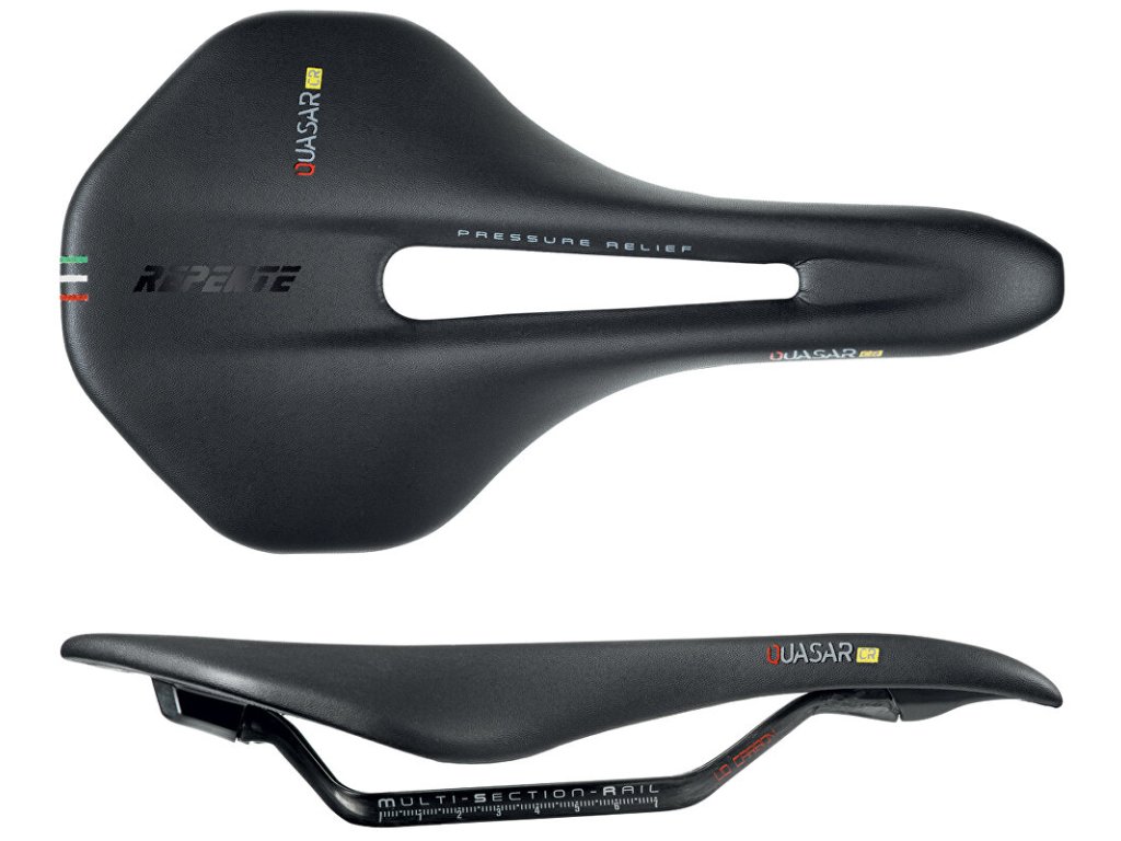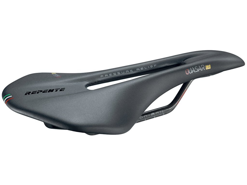 Sedlo REPENTE Quasar CR definuje pojem "ultralight". Nejběžnější používaná šířka 142 mm, ližiny vyrobené z uhlíkových vláken UD T700 a kvalitní polstrování pěnou EVA, dělá ze sedla Quasar ideální materiál pro lovce gramů. Díky inovacím a výstelce EVA klesla celková hmotnost sedla na pouhých 129 gramů.Nový Quasar CR patří mezi nejlehčí polstrovaná sedla na světě!