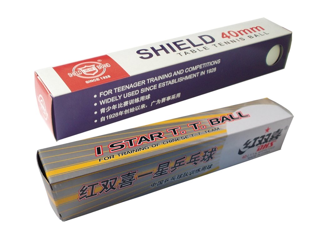 Tyto bezešvé míčky na stolní tenis Shield nebo Double Circle jsou ideální pro začínající závodní hráče. Míčky mají průměr 40 mm a jsou vyrobené z kvalitního materiálu, který zajišťuje dobré herní vlastnosti. Jedno balení obsahuje 6 míčků a cena je uvedena za celou krabičku.