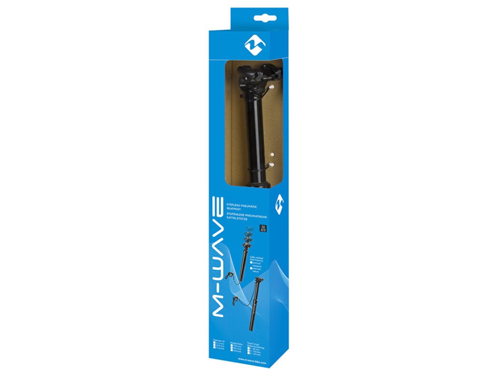 Kvalitní teleskopická sedlovka M-WAVE.- plynulé nastavení rozsahu zdvihu z řidítek 0 - 125 mm