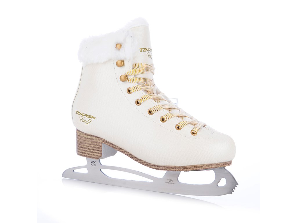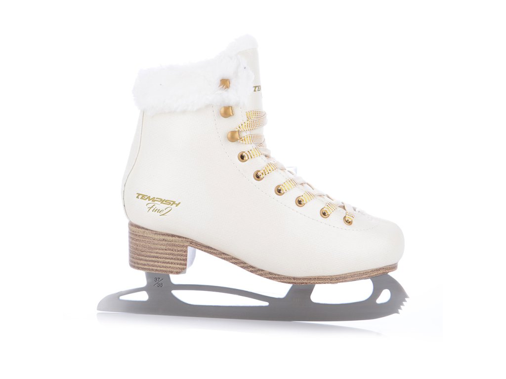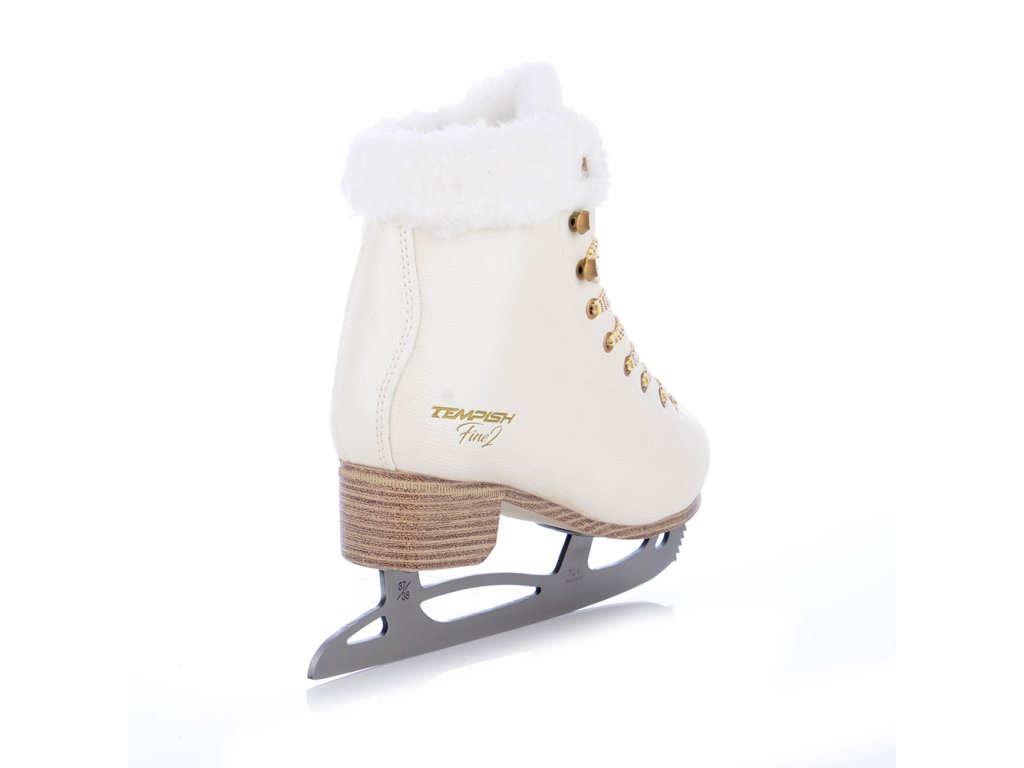 Dámské lední brusle FINE klasické konstrukce pro rekreační, sportovní i výkonnostní bruslení. Bota brusle je vyrobena z odolného PVC, které má zajímavou povrchovou úpravu s plastickým reliéfem. Vnější i vnitřní kožíšek na botě je velmi příjemný na dotek a především se postará o tepelný komfort, kdy udrží teplo v botě i za snížených teplot a delším pobytu na kluzišti, nebo přírodním ledu. Vnitřní anatomicky tvarovaná bandáž s pamětí na bázi latexu DB 120 fixuje pevně chodidlo v botě a přenáší bezchybně pohyb z chodidla na brusli. Anatomicky tvarovaná skořepina boty v oblasti kotníku se velmi příznivě projevuje při pohodlném ovládání brusle a díky ní můžete strávit na ledu dlouhé hodiny a kotníky budou "jako v bavlnce". Na této brusli je použit zcela nový design nože TEMPISH WAVE, který je z nerezové oceli a leštěný.