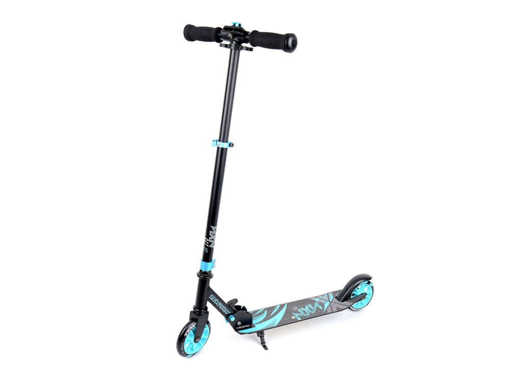 Dětská skládací koloběžka se zadní blatníkovou brzdou. Koloběžka je lehká, snadno přenosná. Snížená úroveň stupátka nad povrchem. Hlavové složení se závitem. Řídítka jsou opatřena objímkou pro zmírnění otřesů.