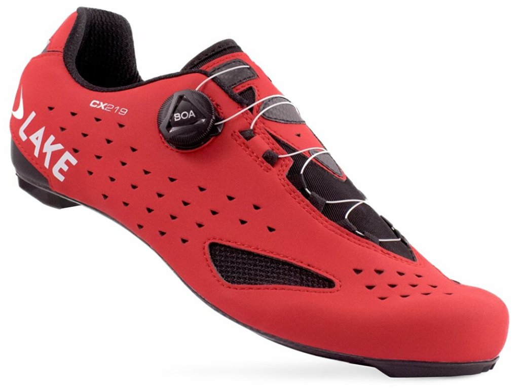 Závodní silniční tretry LAKE CX219 s jedním upínacím systém BOA a 100% karbonovou podrážkou Lake Race zajišťující požadovanou tuhost s optimálním přenosem síly na pedál. Svršek modelu je vyroben ze syntetické kůže Clarino Microfiber specifickou svojí nízkou hmotností a odolností při zachování vysoké prodyšnosti. Svými vlastnostmi a funkcí se blíží pravé kůži.Svršek