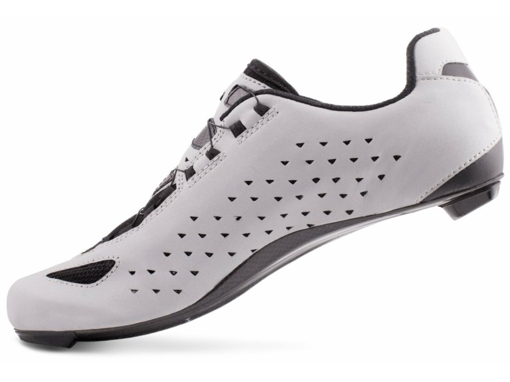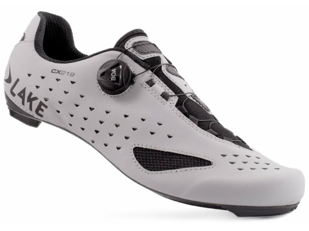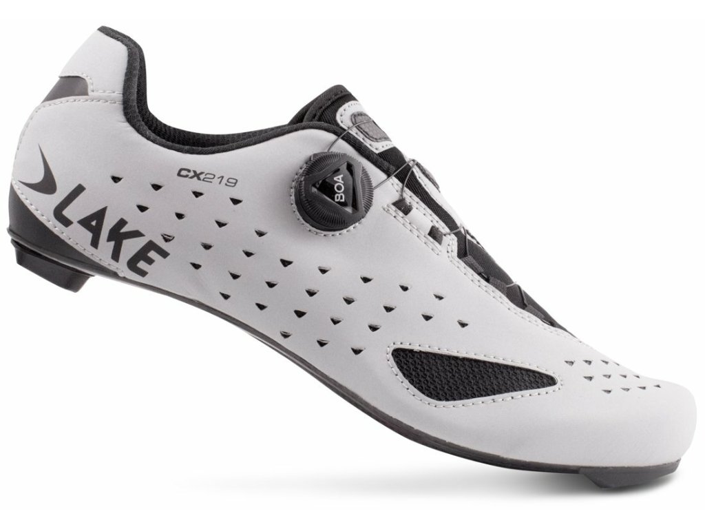Závodní silniční tretry LAKE CX219 s jedním upínacím systém BOA a 100% karbonovou podrážkou Lake Race zajišťující požadovanou tuhost s optimálním přenosem síly na pedál. Svršek modelu je vyroben ze syntetické kůže Clarino Microfiber specifickou svojí nízkou hmotností a odolností při zachování vysoké prodyšnosti. Svými vlastnostmi a funkcí se blíží pravé kůži. Navíc disponuje reflexní úpravou, díky které vás za snížené viditelnosti nikdo nepřehlédne.Svršek