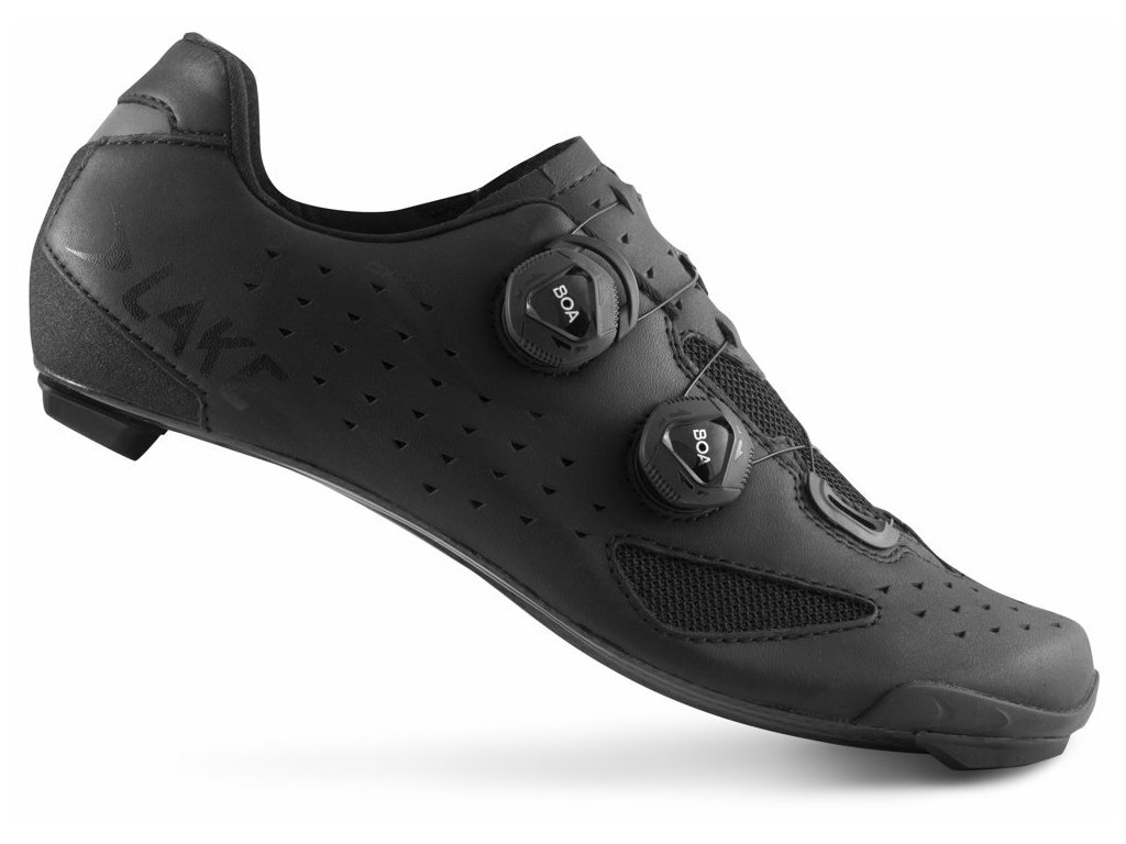 Závodní silniční tretry LAKE CX238 s dvěma upínacími systémy BOA a 100% karbonovou podrážkou Lake Race zajišťující požadovanou tuhost s optimálním přenosem síly na pedál. Svršek modelu je vyroben z kvalitní kůže s dlouhou životností zachovávající si vysokou prodyšnost a voděodolnost. V oblasti paty byl použit jednosměrný fleece zabraňující vyzouvání, který napomáhá udržet nohu na svém místě a předchází nechtěnému pohybu nohy v tretře.Svršek