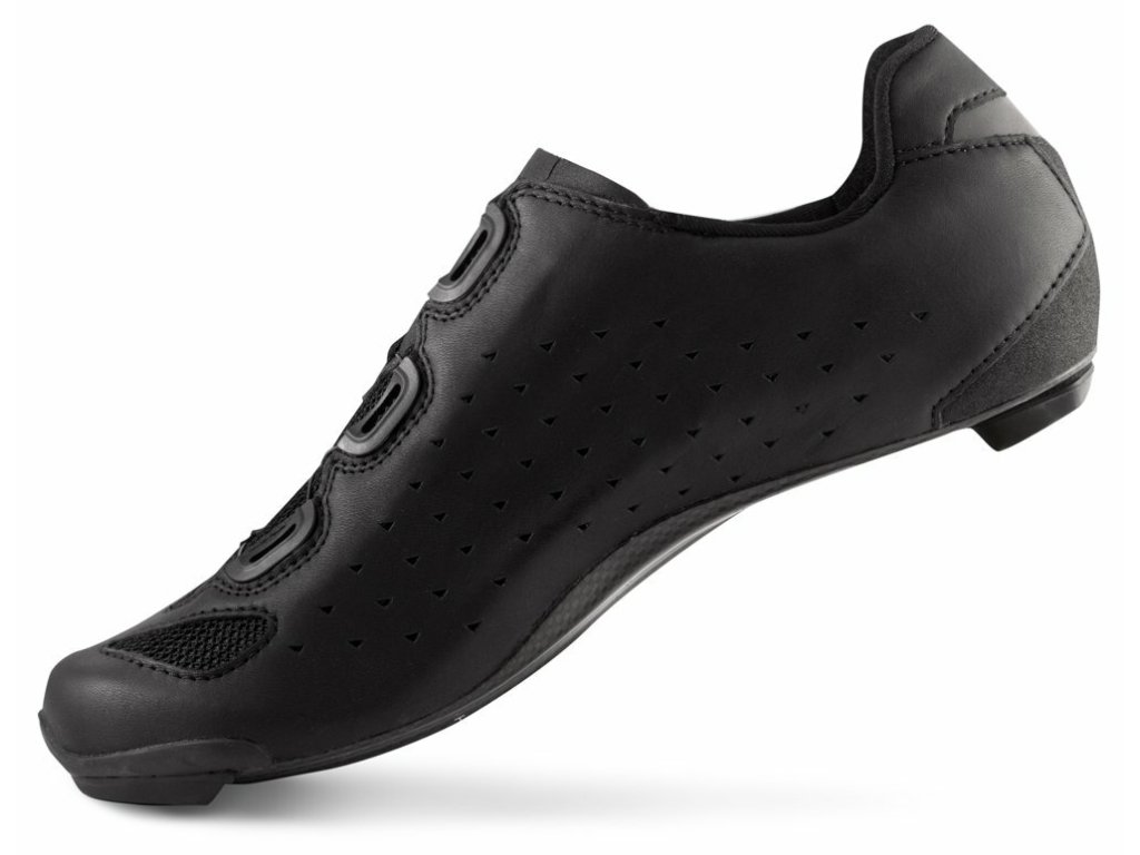 Závodní silniční tretry LAKE CX238 s dvěma upínacími systémy BOA a 100% karbonovou podrážkou Lake Race zajišťující požadovanou tuhost s optimálním přenosem síly na pedál. Svršek modelu je vyroben z kvalitní kůže s dlouhou životností zachovávající si vysokou prodyšnost a voděodolnost. V oblasti paty byl použit jednosměrný fleece zabraňující vyzouvání, který napomáhá udržet nohu na svém místě a předchází nechtěnému pohybu nohy v tretře.Svršek