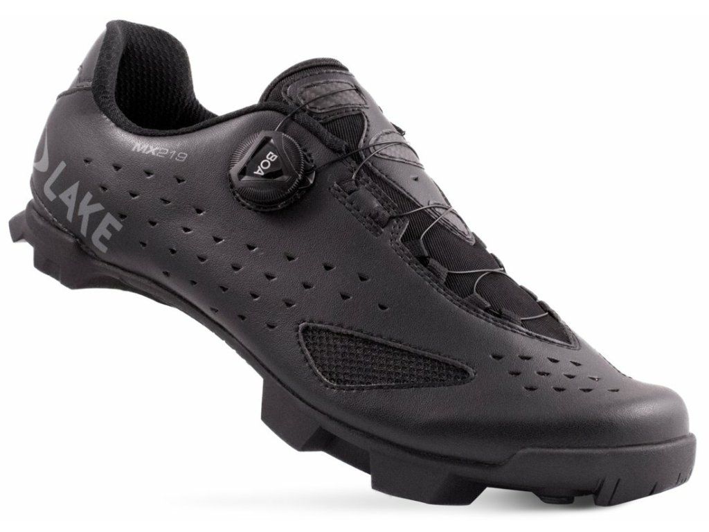 Závodní MTB tretry LAKE MX219 s jedním upínacím systém BOA a 100% karbonovou podrážkou Lake Race zajišťující požadovanou tuhost s optimálním přenosem síly na pedál. V kombinaci s gumou Mountain Competition jsou tretry zároveň pohodlné i při chůzi. Svršek modelu je vyroben ze syntetické kůže Clarino Microfiber specifickou svojí nízkou hmotností a odolností při zachování vysoké prodyšnosti. Svými vlastnostmi a funkcí se blíží pravé kůži.Svršek