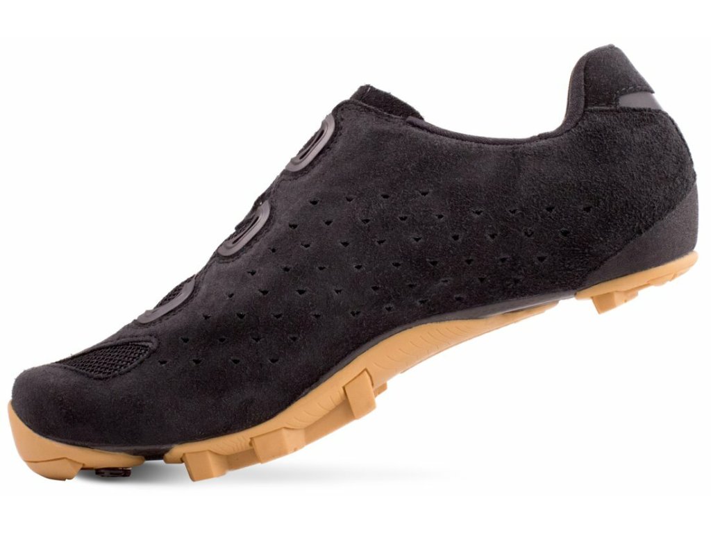 Závodní Gravel/MTB tretry LAKE MX238 Gravel s dvěma upínacími systémy BOA a 100% karbonovou podrážkou Lake Race zajišťující požadovanou tuhost s optimálním přenosem síly na pedál. V kombinaci s gumou Mountain Race X jsou tretry zároveň pohodlné i při chůzi. Svršek modelu je vyroben z kvalitní kůže se semišovou povrchovou úpravou, která je odolná proti odření a zachovává si dlouhou životnost s vysokou prodyšností a voděodolností. V oblasti paty byl použit jednosměrný fleece zabraňující vyzouvání, který napomáhá udržet nohu na svém místě a předchází nechtěnému pohybu nohy v tretře.Svršek