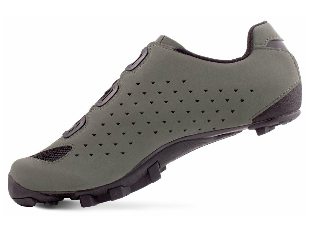 Závodní Gravel/MTB tretry LAKE MX238 Gravel s dvěma upínacími systémy BOA a 100% karbonovou podrážkou Lake Race zajišťující požadovanou tuhost s optimálním přenosem síly na pedál. V kombinaci s gumou Mountain Race X jsou tretry zároveň pohodlné i při chůzi. Svršek modelu je vyroben ze syntetické kůže Clarino Microfiber specifickou svojí nízkou hmotností a odolností při zachování vysoké prodyšnosti. Svými vlastnostmi a funkcí se blíží pravé kůži. V oblasti paty byl použit jednosměrný fleece zabraňující vyzouvání, který napomáhá udržet nohu na svém místě a předchází nechtěnému pohybu nohy v tretře.Svršek