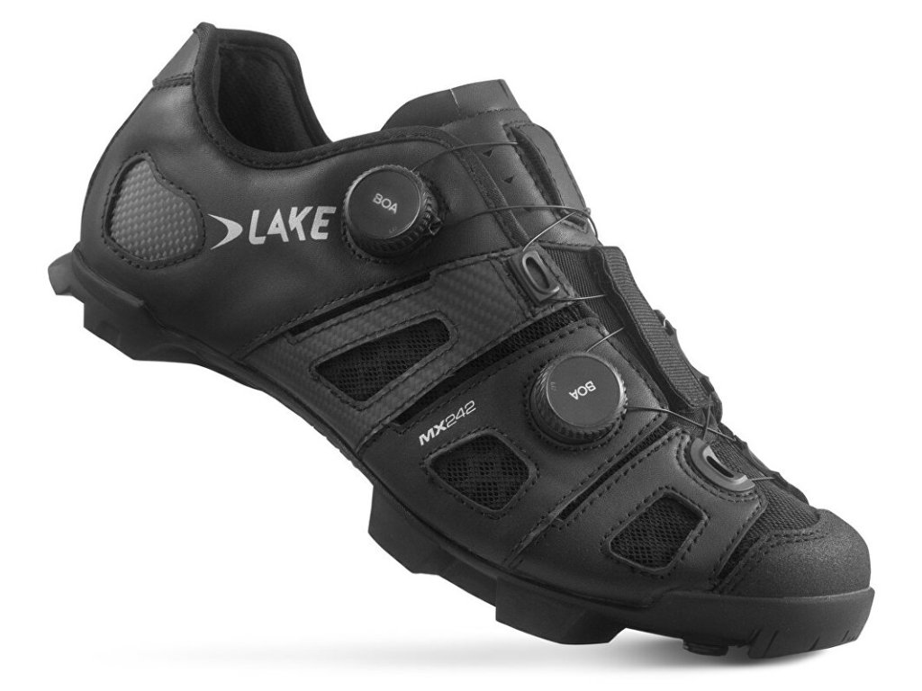 MTB tretry MX242 byly navrženy pro jezdce, kteří vyžadují specifické tvarování tretry v jejich jednotlivých místech. Díky odděleným, jednotlivě nastavitelným segmentům lze citlivě volil sílu dotažení a zohlednit například větší šířku nohy, vyšší nárt, nebo vystupující klouby a kosti. Individuální přizpůsobení se specifickému tvaru nohy předchází bolestem a napomáhá jezdci vydržet v tretrách po delší dobu bez bolesti a nepříjemného tlaku.Tretry jsou vybaveny dvěma upínacími systémy BOA a 100% karbonovou podrážkou Lake Race zajišťující vysokou tuhost s požadovaným přenosem síly na pedál s možností individuálního tvarování patního karbonového dílu. V kombinaci s gumou Mountain Race X jsou tretry zároveň pohodlné i při chůzi. Svršek modelu je vyroben z kvalitní kůže s povrchovou úpravou Helcor se zvýšenou odolností proti odření a dlouhou životností zachovávající si vysokou prodyšnost a voděodolnost.