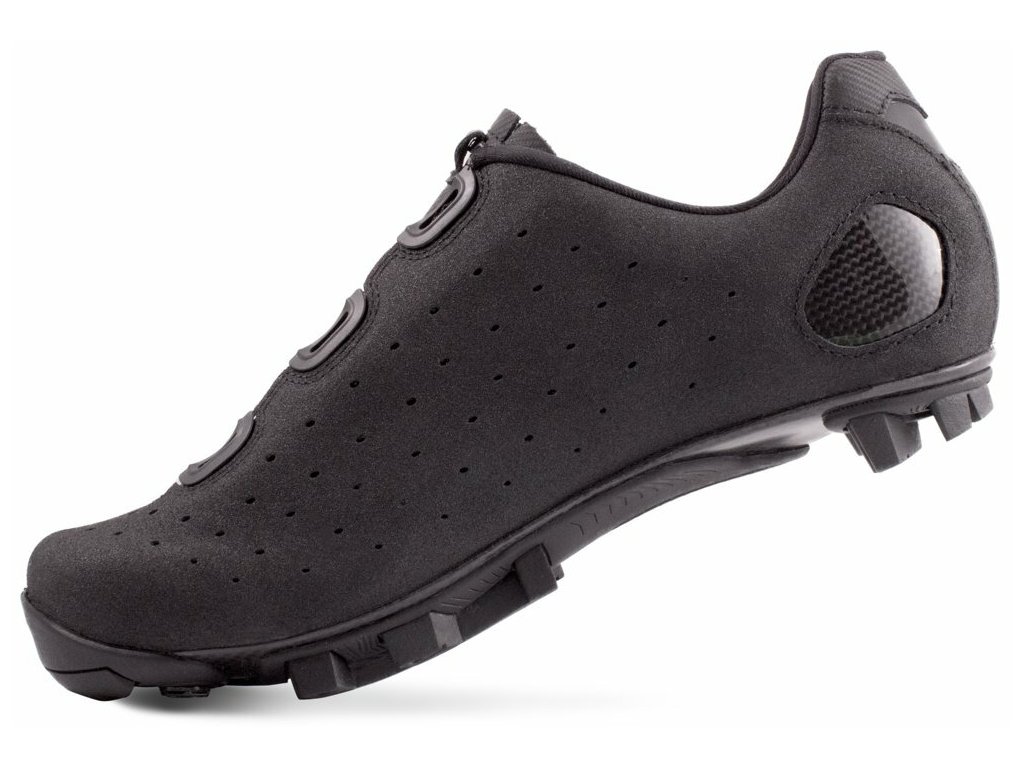 Nejvyšší MTB model využívá patentu LAKE dvojité karbonové podrážky. Vnitřní část je vyrobena z částečně pružného karbonu, který vytváří větší pohodlí a zamezuje otlačení chodidla v kritických místech. Pro vnější část podrážky byl použitý pevný, odolný karbon zajišťující tuhost a maximální přenos síly, aniž bychom obětovali jízdní komfort. Podrážka je doplněná gumou Mountain Race X pro jistou chůzi v terénu.